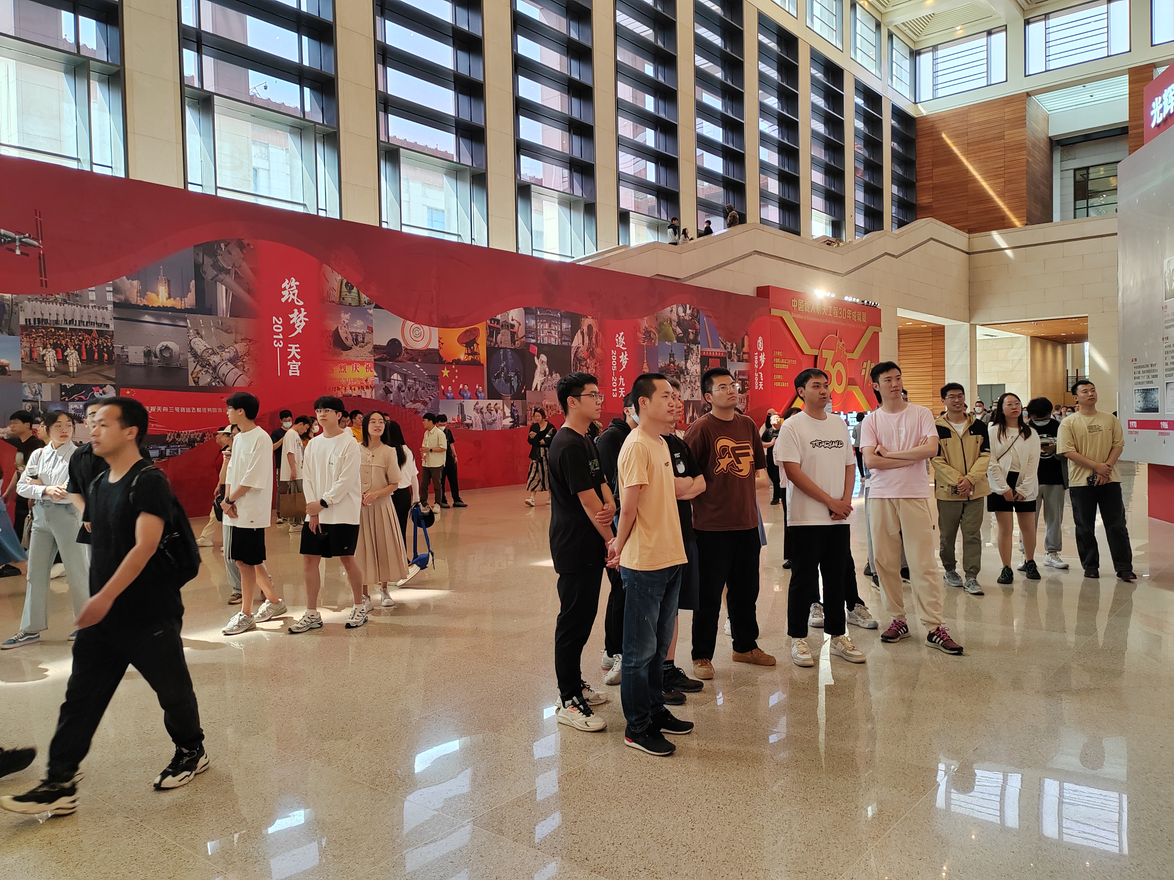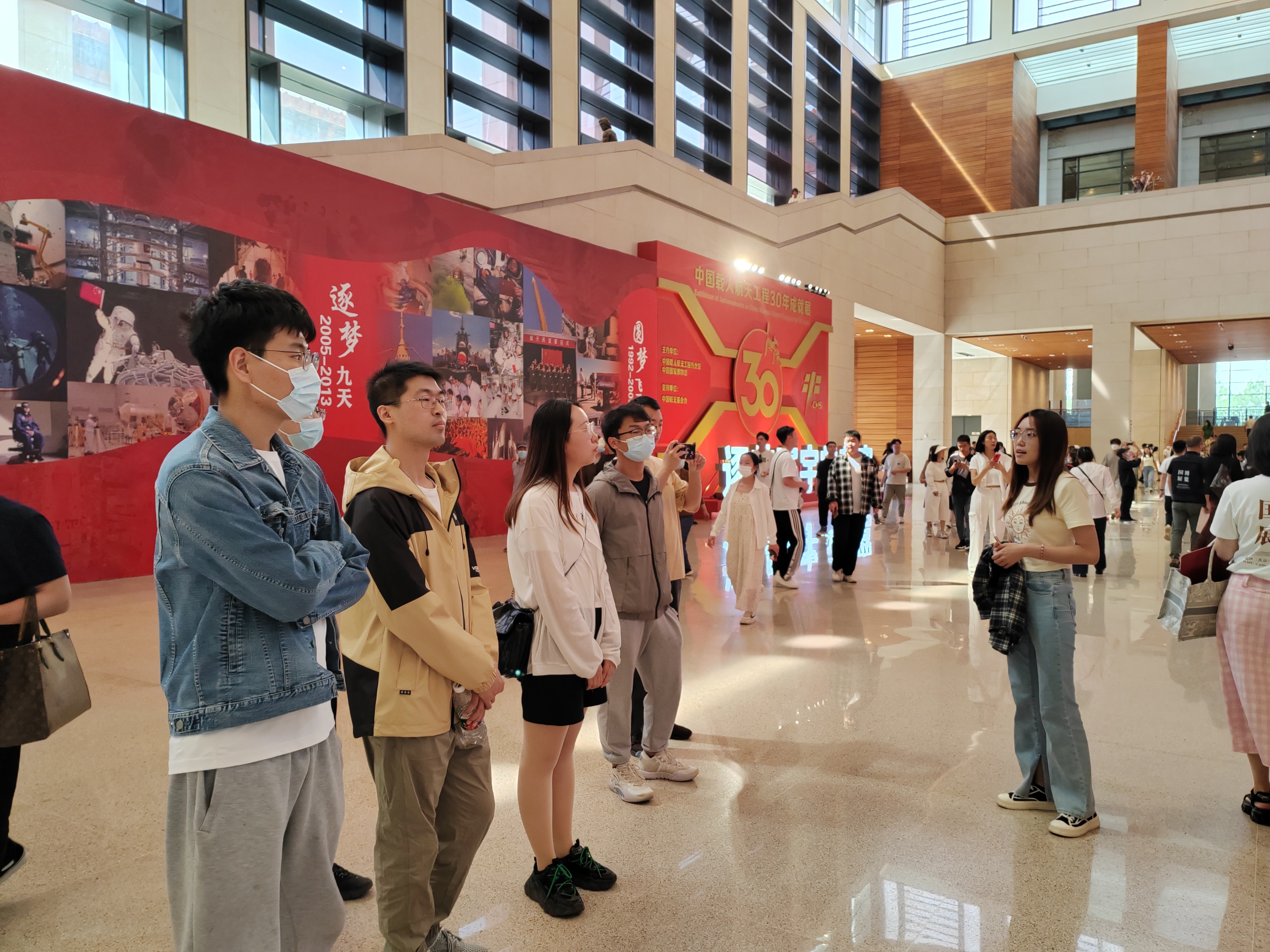 “逐梦寰宇问苍穹——中国载人航天工程三十年成就展”在中国国家博物馆开幕,为发扬载人航天精神,激励当代青年的责任感与使命感,北京亚洲成人在线一二三四五六区电子信息工程学院研2202大班于5月10日组织40名党员和积极分子参观了国家博物馆。期间,4名党员和积极分子作为志愿者承担了航天展的讲解工作。