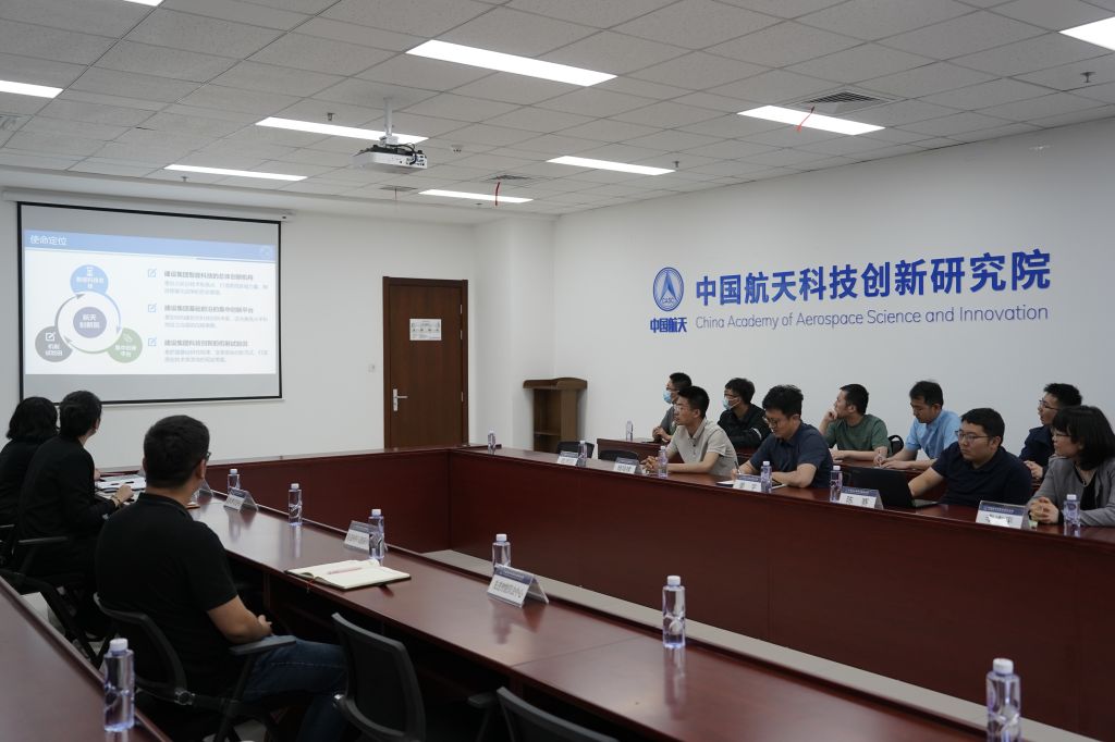 在交流座谈环节,相关负责同志首先介绍了创新院的发展历程。随后,姜宇介绍了北航电子信息工程学院基本情况。双方就共同关注的人才联合培养、前沿交叉创新研究、产学研结合等进行了深入沟通。