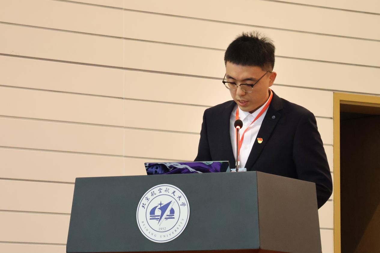 杨鹏瑜代表电子信息工程学院第十二届研究生会作《讲好二系故事,传递北航声音,创新打造“研会+”新发展模式》的工作报告。
