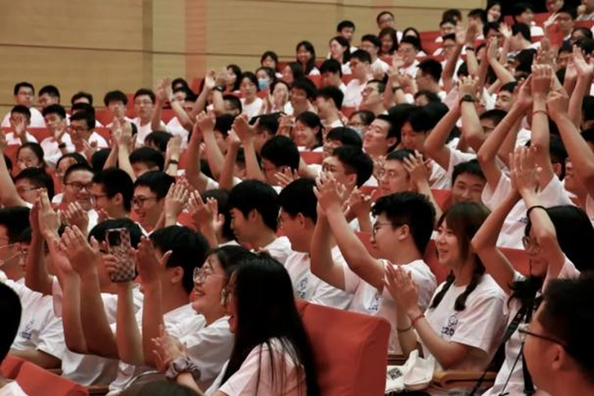 典礼上还播放了本研新生采访视频,以及本科生班主任、新生辅导员对新生们的祝福视频。同学们也纷纷拿出手机记录下这些精彩的时刻。