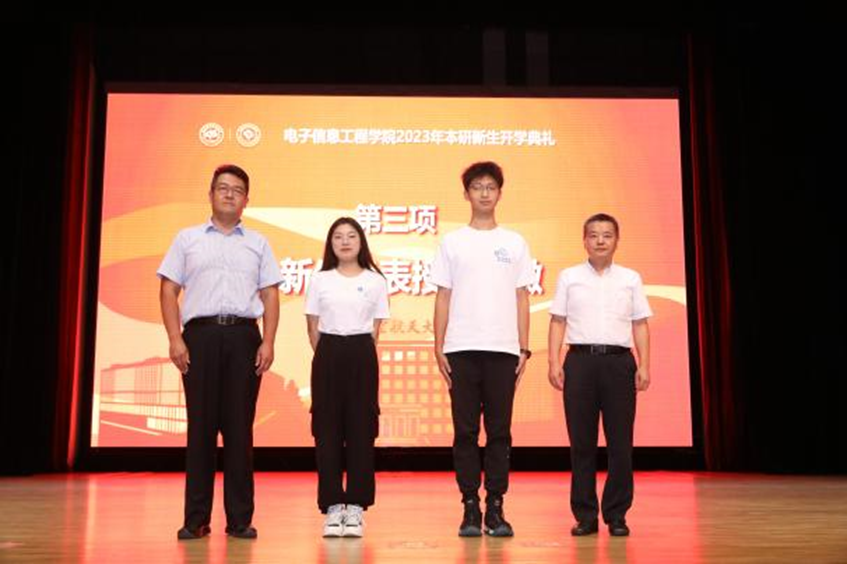 新生代表2022级本科生鄂宣圳同学分享了与电子信息工程学院结缘的故事,表达了作为一名新电子人,要把空天报国精神融入自己的血脉基因,把自身发展融入时代进步的磅礴浪潮,不辜负党的期望、人民的期待和民族的重托,为党和国家事业发展作出更大的贡献。