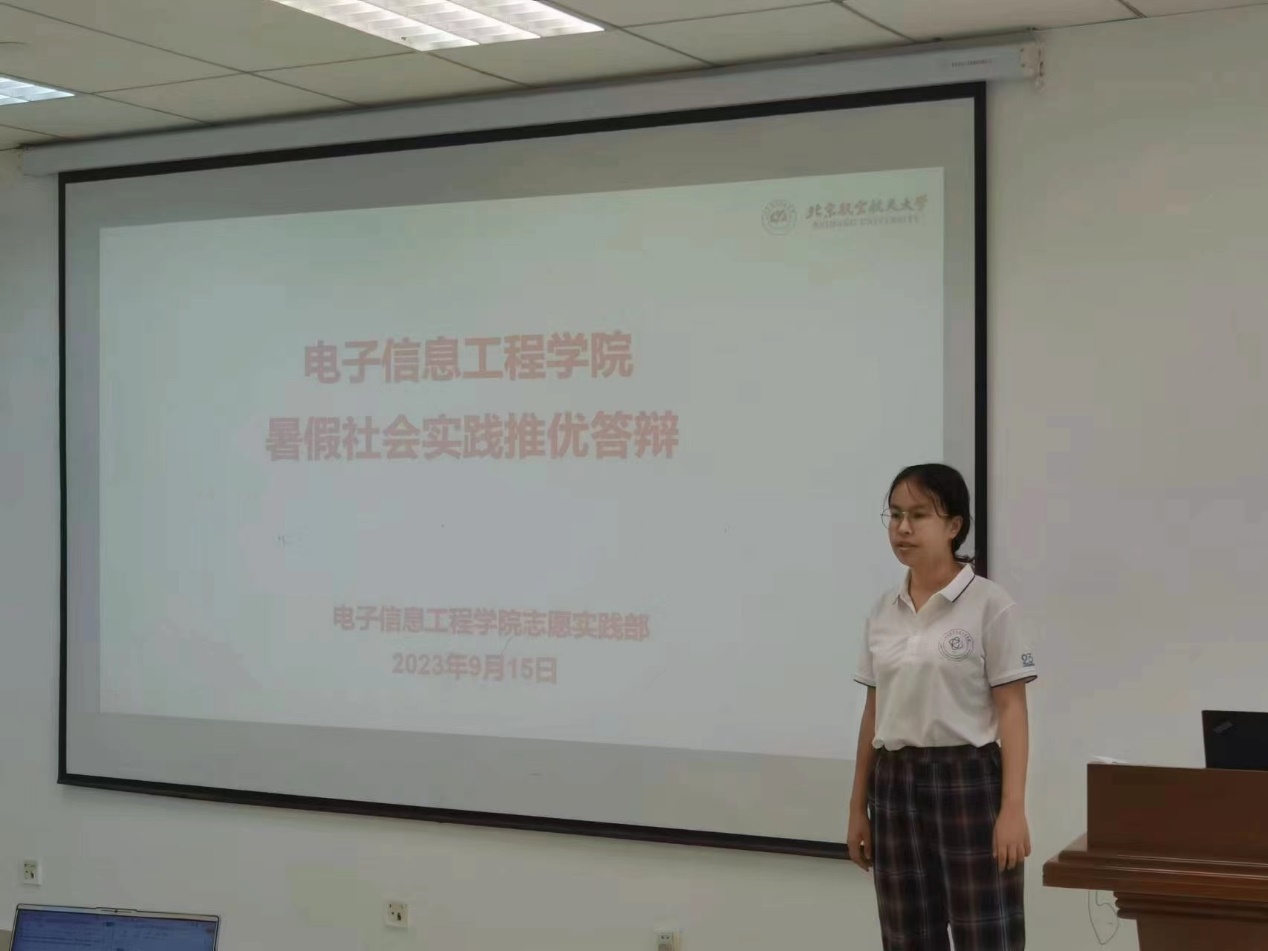 为贯彻落实习近平总书记关于青年工作的重要思想,引领广大青年上好理论与实践相结合的“大思政课”,在社会课堂中“受教育、长才干、做贡献”,进一步展现学院2023年暑期社会实践成果,9月15日下午, 电子信息工程学院2023年暑期社会实践推优答辩会在新主楼F708举行。答辩会邀请了学院党委副书记姜宇、专职辅导员聂静、田旺、本研辅导员、志愿实践部部长团担任评委,答辩会由辅导员吴欣雨主持,今年暑假我院共有36支队伍参与实践,一起看一看优秀实践队风采展示吧!