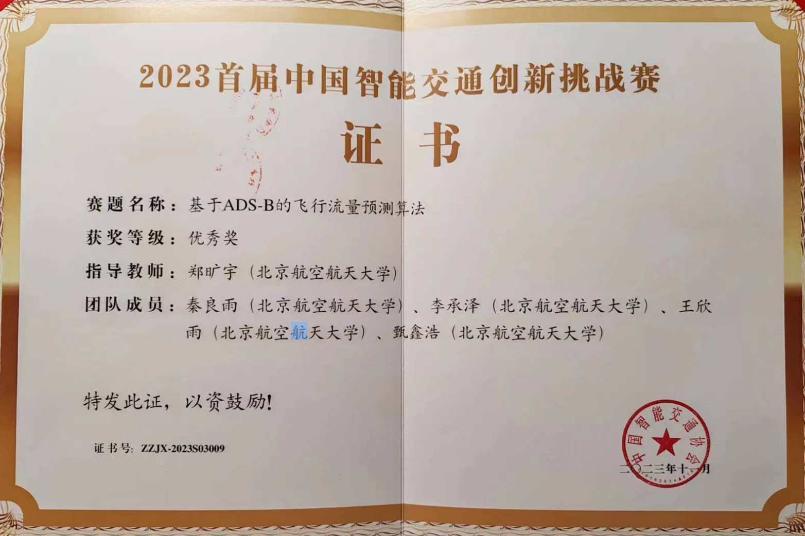 我院获得赛题三:基于ADS-B的飞行流量预测算法