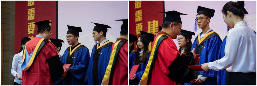 毕业典礼在全体师生合唱校歌《仰望星空》中结束。在之后的学位授予仪式上,教师代表为毕业生们一一扶苏拨穗,送上美好祝愿。
