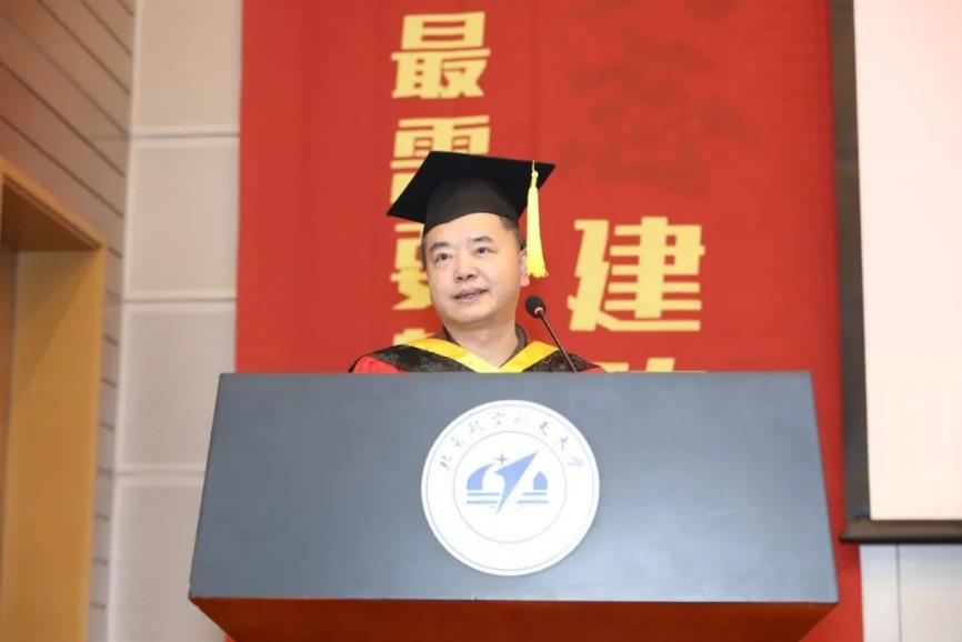 在热烈的掌声中,院长曹先彬教授发表了热情洋溢的讲话。他饱含深情地回顾了同学们攻坚克难、全面发展、心怀家国的成长历程。在毕业之际,曹先彬用三句话寄语全体2024届毕业生:一是要确立远大志向、牢记空天报国使命,把个人的发展融入国家的发展规划中;二是要勇于创新、不怕困难,永葆北航人挑大梁、担重任的勇气;三是要提高综合素质、收获幸福人生,用宽广扎实的专业基础知识和德智体美劳全面发展的综合素质,拥抱多彩生活。