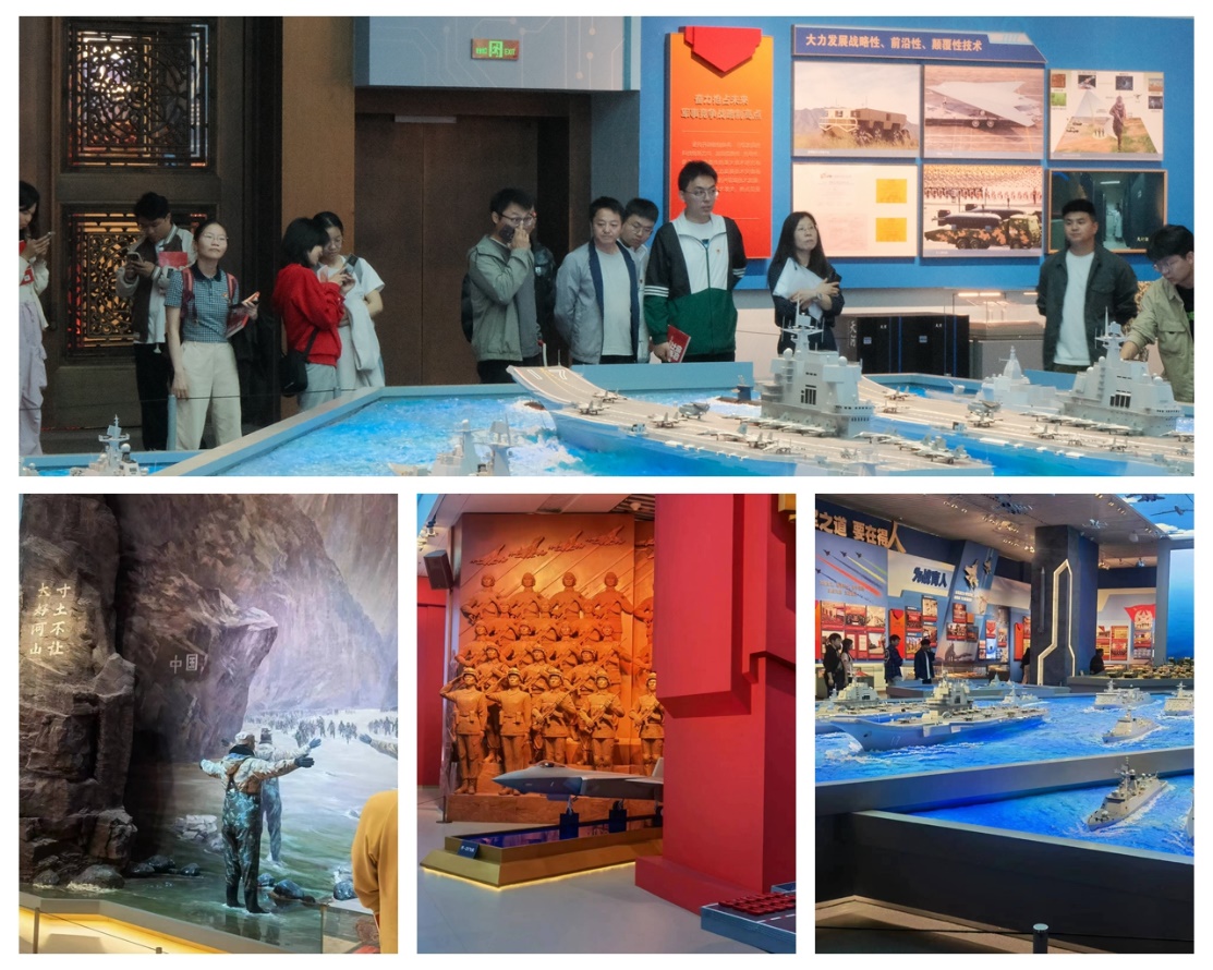 接下来,各位老师和同学参观了飞机、兵器等展厅,身临其境地领略了“轰6”、“东风-2”等装备的威武庄严,共同感受了中华民族抵御外来侵略、不屈抗争的伟大精神。